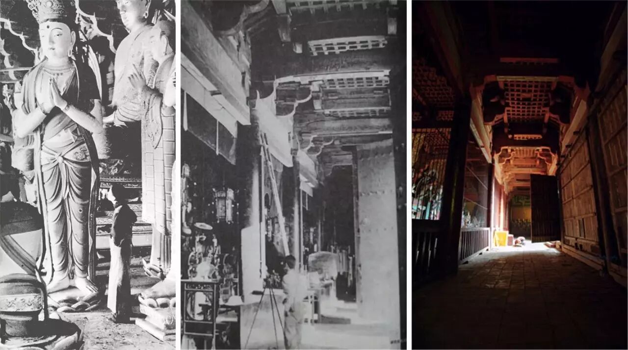 梁思成先生循着《敦煌石窟图录》苦苦寻找的佛光寺静静隐匿香火旺盛的五台山寺庙群之外,看到笼罩在绚烂余晖中的佛光寺的一刻,那真是他们一生中最幸福的时刻,那深远的出檐、硕大的斗拱都说明这是一座唐代建筑!大殿内的景象更是让梁思成和林徽因惊讶不已,“那高大的殿门顿时就给我们打开了。里面宽有七跨,在昏暗中显得更加辉煌无比。”